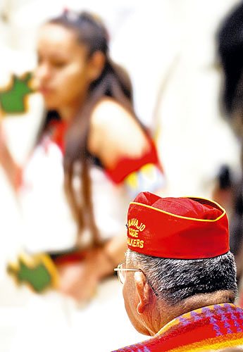 Navajo Code Talker Jack Jones watches dancers from the Ice Mountain
