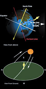 This diagram shows how the Sun moves through the sky on the