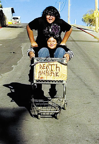 while taking turns pushing each other around. [Photo by Brian