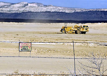 1,500 people, Byers said of Neutron Energy. Rail transport Van Horn said the future of mining in New Mexico is the conventional mill, and thats whats going to get us jump-started. With URIs recent acquisition of BHP Billitons Rio Algom mill, formerly Kerr-McGees Ambrosia Lake, URI can cut in half the time it takes to construct the mill, he said. It positions us as a leader here, and we will be the leader, both from a safety and economic standpoint, he said. It also gives URI two Nuclear Regulatory Commission licenses. URI plans to duplicate the footprint of the Ambrosia Lake Mill, where infrastructure is already on site, and to finish ongoing reclamation. We already hold an NRC license at Churchrock/Crownpoint. This will give us our second operating license, and we will be the only one in the state, so far, that has NRC licenses to operate uranium recovery facilities. URI has 92 million pounds of uranium in reserve in New Mexico. We have an extensive database that were using to look for more reserves, and through Santa Fe Pacific Gold we acquired 183,000 acres of land that is amenable to uranium mining, Van Horn said. Though URI has in-situ recovery operations in Texas, Most of our resources are in the state of New Mexico. This is our future. Thats why were here, he said. URI also acquired 9,700 acre-feet per year of water rights to support milling activities. Its subsidiary, Hydro Resources Inc., has applications on file with the New Mexico Office of the State Engineer requesting appropriations of groundwater for in-situ recovery projects in McKinley County at its West Largo and Roca Honda project sites. Each application seeks 650 acre-feet of water per year for the next 50 years in the Bluewater and Rio Grande basins. Conventional mining also requires considerable amounts of water. The Roxby Downs uranium mine in southern Australia, operated by BHP, is reported to use 35 million liters of water per day. Van Horn said that with the in-situ recovery operation, when we locate an ore body, we cannot inject distilled water in that ore body if it is a drinking water source. It has to be specifically exempted by U.S. EPA, and we get an aquifer exemption for that, which is an exemption that says you cannot use this water in this ore body for drinking water because its already toxic, it has uranium in it already, thats the way Mother Nature put it there and it should not and cannot be used as a public water supply. When we restore this, we restore it back to