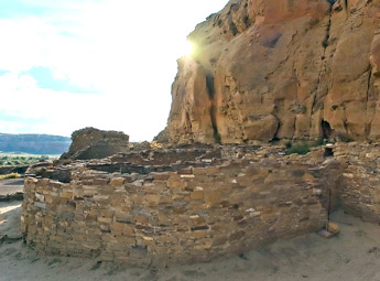 By Helen Davis NAGEEZI Most people living in northwestern New Mexico know about Chaco Culture National Historic Park and its huge kivas. But how often do local residents take advantage of the parks camping, tours, lectures and trails? With the price of gas this year limiting travel by car, Chaco Canyon is a fine destination for those looking for a break but who find New York, or even Roswell, too far to travel. Chaco Canyon is a world-class attraction and educational center, as well as a familiar local attraction. The historic site was put on the United Nations Educational, Scientific and Cultural Organization World Heritage list of historic, educational and cultural places in 1980, said Russ Bodnar, chief of interpretation at the park. Chaco Canyon is designated a U.S. National Historic Park, as well. Every summer the Chaco Canyon staff and the U.S. National Park Service offer ongoing programs and a special midsummers celebration. The big Chaco Canyon summer event is the sun aligning with the ancient solstice marker, visible from the great kiva Casa Rinconada at sunrise for three days during the Summer Solstice. In honor of Chacos history as an ancestral pueblo center and the ancient solstice marker, the park will present special events, including lectures, native dancing and a dawn viewing of the sun on the famous marker, from June 20 through June 22. The solstice marker viewing begins on June 20 and continues for the next two days, with spectators gathering at Casa Rinconada at sunrise 6 a.m. each day. For these three days park gates will open at 5:30 a.m. Park rangers and guides expect between 600 and 900 people to show up for the dances on Saturday, June 21, Bodnar said. You really get an opportunity to invite folks. The tribes can take part in an ongoing tradition. Visitors get a chance to see what the past might have been like, Bodnar said. The interpretive officer said many of the dancers who have not been to Chaco Canyon before have a chance to feel what their ancestral ceremonies may have looked and sounded like with the voices and drums reverberating off the cliffs, where sound carries and amplifies off the nearly barren walls. He said most visitors to solstice events are respectful and reverential about the proceedings. This year the special dance guests are Cyrus Concho and the Acoma Sky City Group Dancers who will present traditional social dances in the plaza of Pueblo Bonito all day on June 21. Bodnar said the historic site also offers programs all summer long on more general topics. From April to October the park offers astronomy and other lectures on Tuesday, Friday and Saturdays for park visitors. Chaco Canyon has a fine telescope and small observatory that visitors may use after the lectures. This year visitors will find camping limited because of trouble with one septic tank. Normally, the park has 45 overnight sites plus group sites, but this year difficulty with a septic tank shut down the group sites and some of the private sites, so only 35 camp sites are open, Bodnar said. Ruby Ranch five miles south of the park entrance on New Mexico Highway 57 the dirt road off Navajo 9 has primitive camping for those willing to pack in water and food and make their own latrines. Bodnar said the famous dirt road is in good shape and should present no problem, unless there is heavy rains. Motorists should slow down for cattle guards and avoid rocks and ruts. Information: Chaco Culture NHP, Nageezi, NM 87037.
