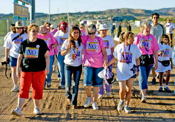and has been finding support at the Relay For Life ever since. King added that the Relay gives survivors hope. Her favorite activity for the Relay every year is the luminaria ceremony. It is difficult to explain what it means to her as a survivor, she said. That one is the healing part. It makes you know youre still here, she said. For Elizabeth Higgins, it was her first time at a Relay For Life event. She traveled from Wichita, Kan., to show support for her daughter, who is a cancer survivor of 15 years and lives in Gallup. Though it was her first attempt at the Relay, Higgins said enthusiastically, I walk regularly so Im ready. She added, Its something that the community can really look to with pride that theres this kind of support. Teresa Vinson was at the Relay with numerous family members in support of one of their family members who is a cancer survivor. We didnt think anyone in our family would have cancer, Vinson said. It makes you think about life. Now she and her family are planning to form a team for next years Relay. The Relay began with an opening ceremony at 6:30 p.m., Friday, where each of the cancer survivors was recognized and a blessing was made for them. The Mr. Relay Contest, a popular event where men dress as women and collect donations, and the purse auction were held later in the evening. Also Friday night, the Celebrate, Remember and Fight Back Rally took place where flags were available for participants to take to commit to saving one life this year in the fight against cancer. Luminarias honoring cancer survivors or in memory of those who lost their fight lit up the night when all the lights in the complex were shut off and a message that said Cure was also lit. |