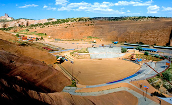 Indoor arena to be built By Kevin Killough GALLUP Red Rock Park will be getting a new indoor arena. Unlike the current outdoor arena that hosts the citys rodeos and Inter-tribal Ceremonial, the new arena can be used year-round. Its something the schools can use in the wintertime, Mayor Harry Mendoza said. The costs are expected to run $5 million to $7 million. The architects for the project, Wilson and Company, are currently drawing up plans for the facility. Until those are complete, exact figures for construction and annual operational costs are hard to come by, the mayor said. The arena will be about 69,000 square feet and have 5,000 permanent seats with space for another 3,000 temporary seats. The mayor hopes the new venue will attract a wide variety of events, including rodeos, concerts, horse shows, and car shows. These would be mostly winter events, so the park continues to draw tourism revenue in the off-season months. Its an all-purpose arena, the mayor said. He said that the facility would be especially good for team roping events. Team roping is real popular in this area,