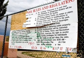 condition. Itll make you fall forward, he says. That ones nasty, says Lane Ellsworth, pointing to a portable toilet outside the gate. When the city built the new courthouse, damage to corners from skate boarders was of particular concern. Their hobby is the cause of damage to concrete and other public structures, which can be costly to clean. The city installs metal stops along the edges of concrete corners to discourage skateboarders from sliding along the edge with the decks of their boards, which marks up the edge. But the park was suppose to be a big incentive to keep skaters off public and private property. With resources limited and more important demands calling for funding, the park cant be a top priority for the city. City Manager Gerry Herrera says he wishes the kids would use the park more. I think the kids prefer to use the parking lot of Pinnacle Bank more than they do the park, he said. The Parks Department maintains the park, which is free and open to the public. |