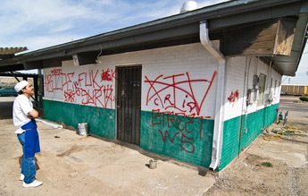 on the back of his restaurant Tuesday morning in Gallup. Garcia
