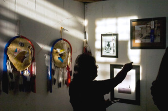 Navajo Fair highlights work Copyright © 2008 WINDOW ROCK The annual Navajo Nation Fair is often seen as a chance for the Navajo people to get together, see old friends and see the different types of agriculture, livestock and art work that is being done across the Navajo Nation. During the fair, a group of Native artists Art of the People had a booth in Gorman Hall. On Wednesday evening, young artist Dustin Rockmen showed how he draws art using his feet. Other artists also demonstrated their talent at the booth throughout the fair. Baje Whitethorne, famous for his paintings and as a childrens book illustrator, was one of the artists on site to show his art work and to promote creating art to the Navajo people. Most of our group of artists are well-established artists that share with the new, upcoming, interested that want to pursue their arts in school. I think we provide answers and give them direction, Whitethorne said. Whitethorne said that he had already sold an unfinished piece for $11,500 earlier in the week at the fair. Thats why were