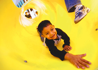 a slide at the Palyground of Dreams park on Friday afternoon. White