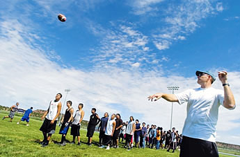 By Michael Peretti ZUNI For nine years Chad Lewis competed in the NFL, playing for the Philadelphia Eagles and St. Louis Rams. Now, he looks to give back. Last Saturday, Lewis put on a football camp at Zuni High School for local football players. Ever since playing in college at BYU, Lewis said that he has had a special bond with Native Americans. One of his good friends at BYU was Nathan Claw, a former Shiprock Chieftains quarterback. Lewis, born in Fort Dix, N.J., went to school in Orme, Utah, where he said he first learned about Native Americans. He said he read about Sitting Bull, Crazy Horse and Custers Last Stand, and ever since then he has been affiliated with Native Americans. Now, Lewis works for the American Indian Services, which raises money for college scholarships for Native Americans to continue their education. He said he has been working with the association for close to 10 years, and it is an organization that has received help from other former NFL players like Steve Young. For more than 10 years now, Lewis has been putting on camps across the country on reservations, with several of the camps in Arizona and New Mexico. The most recent camp was the first he has put on in Zuni, though he has been to the town for a youth conference two years ago. For one day, about 60 athletes that attended the free camp, including three girls, got a chance to get advice from a former pro tight end on different drills to run and plays to try. I thought it was a great morning, Lewis