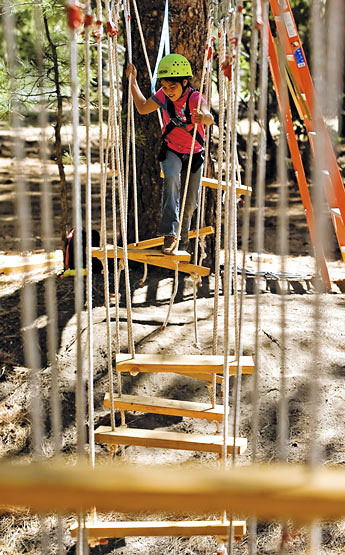 Mist Quam, 9, of Zuni makes her way across the rope bridge at