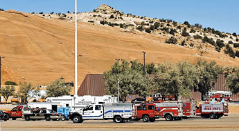 CHURCHROCK The Red Rock State Park auditorium transformed into a mock disaster scene Tuesday morning as emergency responders tuned their ability to respond to a mass-casualty incident. The staged scenario involved a threat of an explosive at Red Rock State Park and ultimately the mock detonation of five explosives inside the occupied auditorium. Law enforcement and first responders rushed to the scene to care for the wounded, who were played by students from Gallup High School. It was pretty chaotic, Christy Luna, a senior from Gallup High School, said. Luna and a group of friends posed as persons who were killed during the explosion; however, the acting wasnt too difficult, Junior Franki Gomez said. We just laid there on our chairs, while they rushed around, Gomez said. The girls faces were painted to look as if theyd been bloodied and bruised from the blast. After the simulation, they enjoyed snacks provided by the local chapter of the Red Cross. It was a lot of fun, Luna said. But for law enforcement, the simulation was a more serious matter. Mark Diaz, the emergency manager for McKinley County, said the scenario was intended to test local first-responders abilities to respond to a catastrophe with many wounded and dead. Local agencies worked with the 64th Civil Support Team to conduct the operation and practiced their transportation and response skills from about 7 a.m. to noon on Tuesday. Sgt. Ted Collins, of the New Mexico State Police, said the simulation involved 16 students, four of which were pronounced dead at the scene and the remaining 12 were transported to local hospitals. Overflow patients were taken to Cibola County hospitals once local hospitals were filled to capacity. Everything is going smoothly, Collins said of the mock disaster at about 11 a.m. He said the civil support team also searched the auditorium for radiological and biological remnants following the mock blast. Officials also landed a helicopter near the scene to simulate a fly zone to transport the injured from the auditorium. The FBI, sheriffs department, Gallup police, state police, county and city fire departments, Gallup Indian Medical Center, Rehoboth McKinley Christian Hospital, Office of Emergency Management, Med-Star ambulance, Sandia National Laboratory, Red Cross and Cibola County hospitals participated in the simulation. |